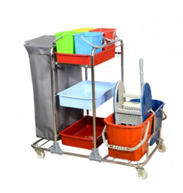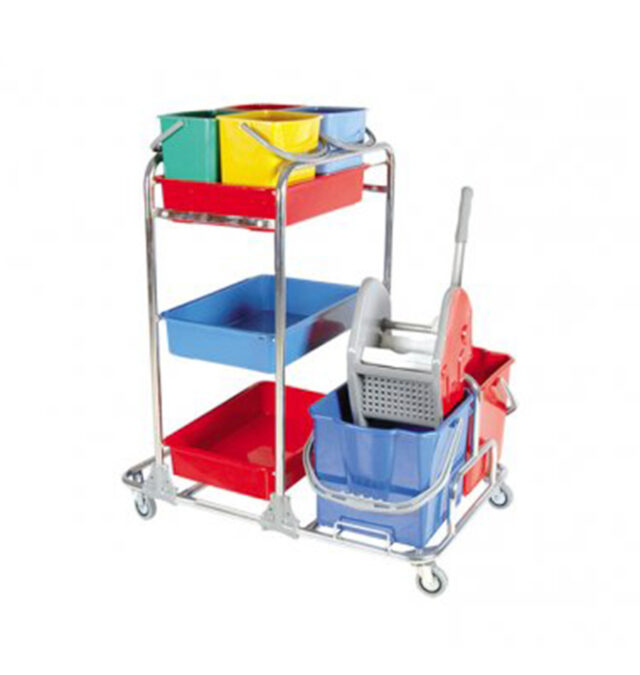 Krom Gövdeli Krom Presli Çift Kovalı Temizlik Arabası