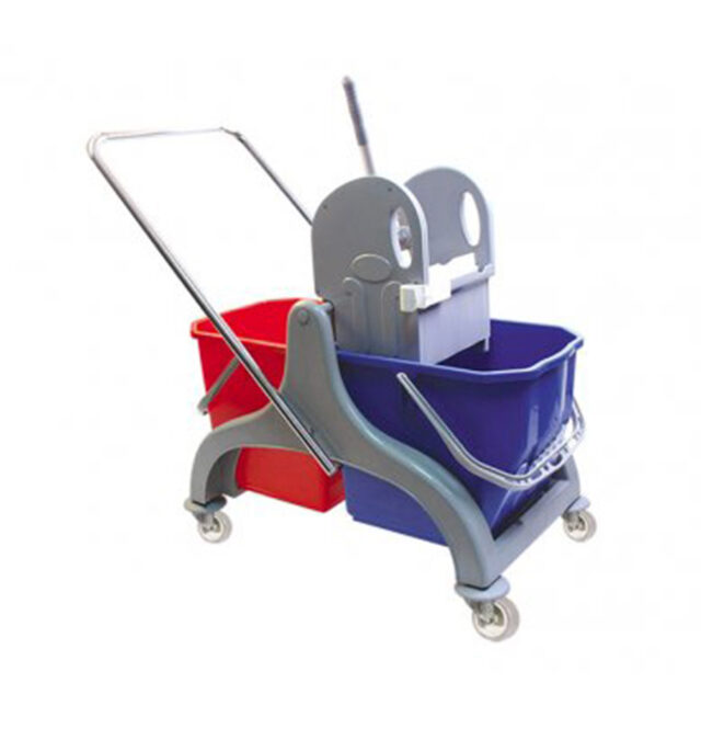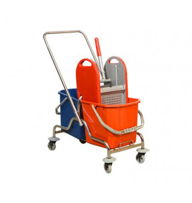 Krom Gövdeli Plastik Presli Çift Kovalı Temizlik Arabası